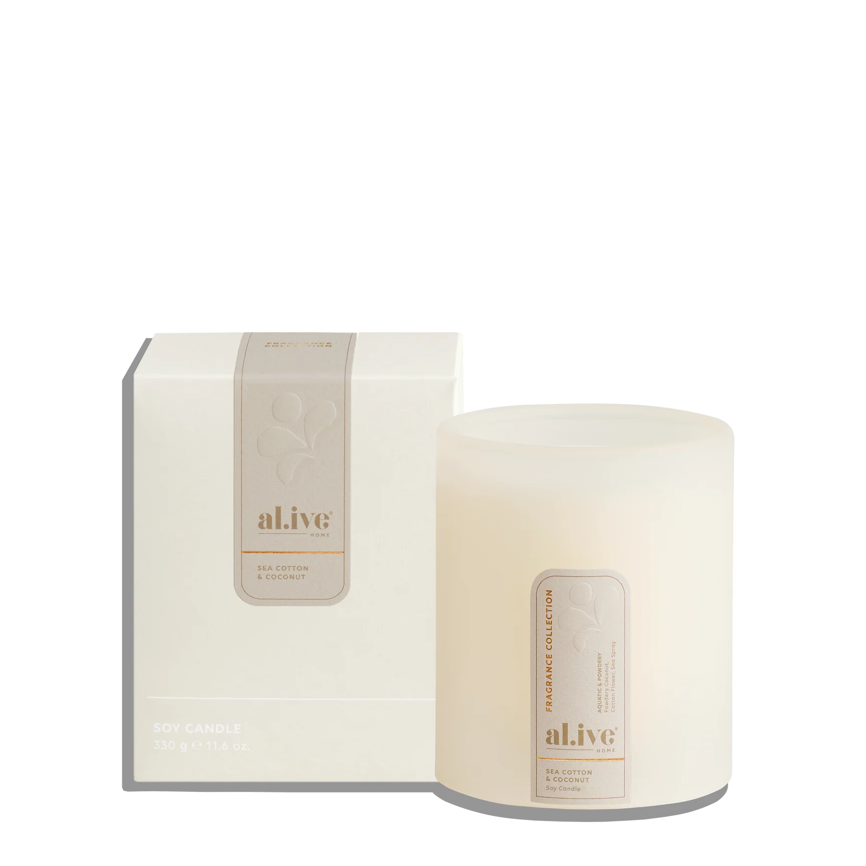 Our Sea Cotton & Coconut Soy Candle captures the essence of freshly laundered linens kissed by a crisp ocean breeze. Hand-poured in Australia with a natural soy wax blend, it combines delicate powder with marine freshness, creating a calming atmosphere. With up to 70 hours of burn time, the sculptural frosted glass vessel adds both lasting scent and refined styling to any space. Your customers will love the serene, fresh atmosphere it brings to their homes.