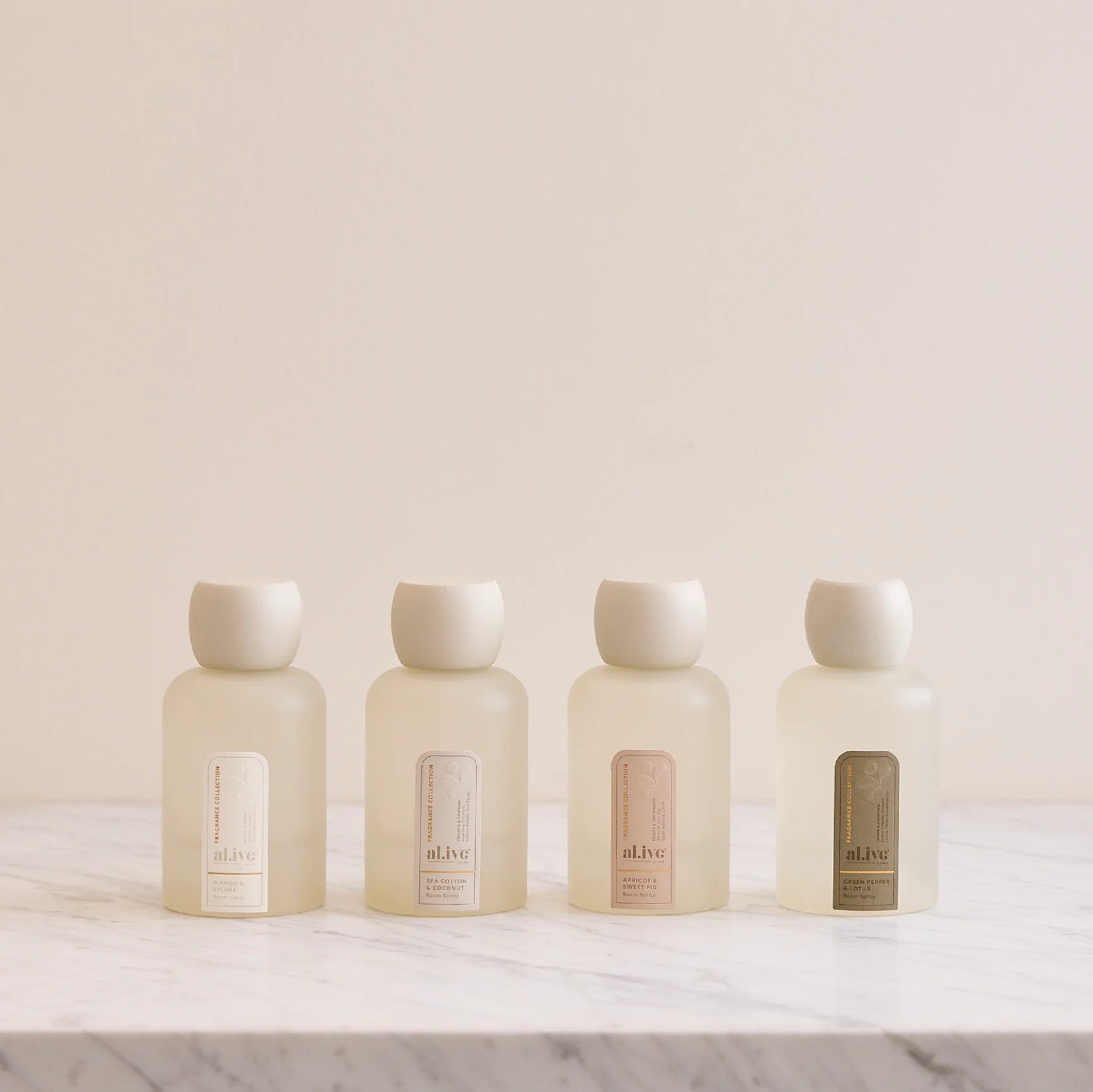 An uplifting Room Spray that layers tropical florals, fresh lychee, and bright citrus for a light, energising atmosphere your customers will love.