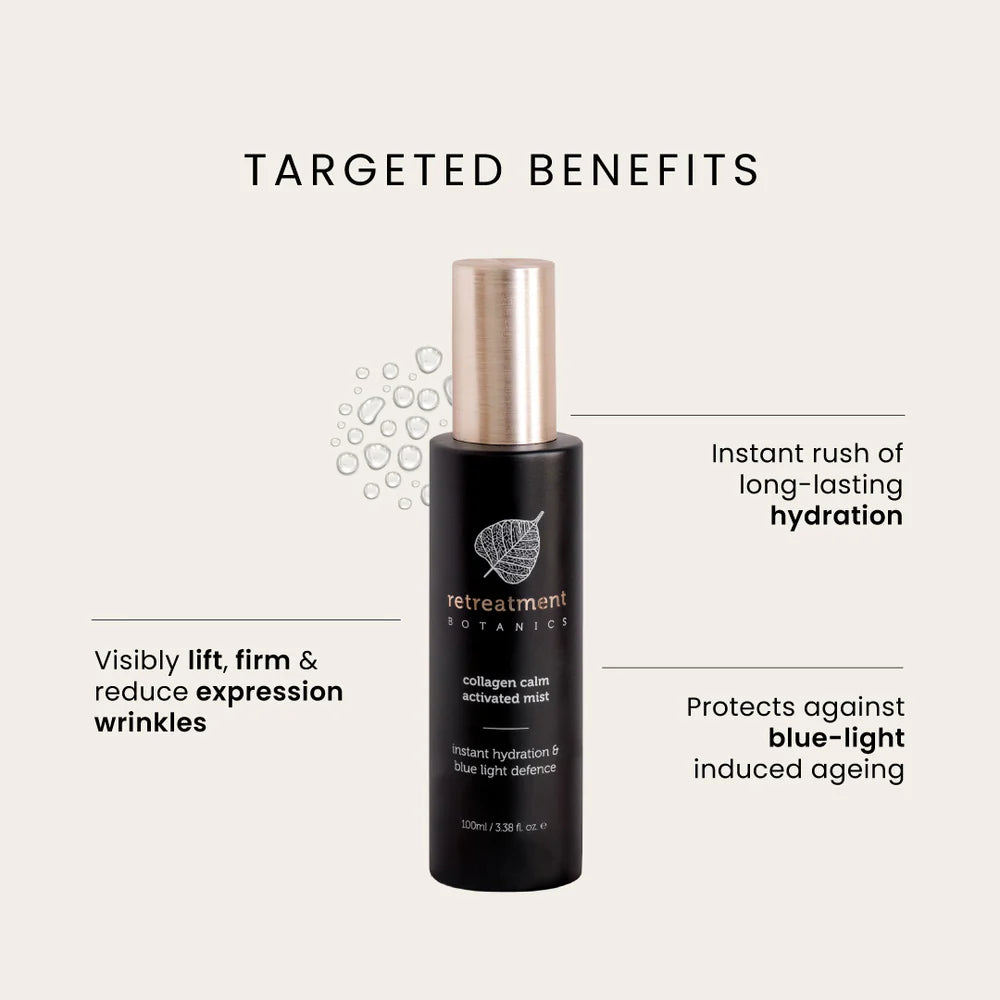 An activated mist infused with advanced peptides, vitamin c and collagen-boosting actives to provide an instant rush of hydration, protection and a long-lasting dewy glow.