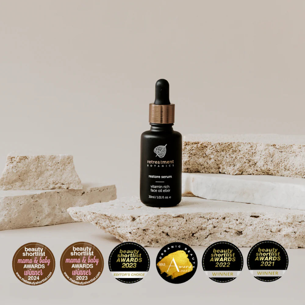Tip: Restore Serum is subtly scented with gentle 100% pure essential oils, designed to uplift your spirit while de-stressing on an emotional and energetic level. Relax your face muscles and take a few deep breaths while visualising any physical tension melting away.