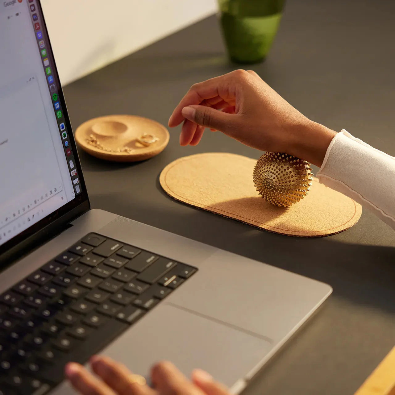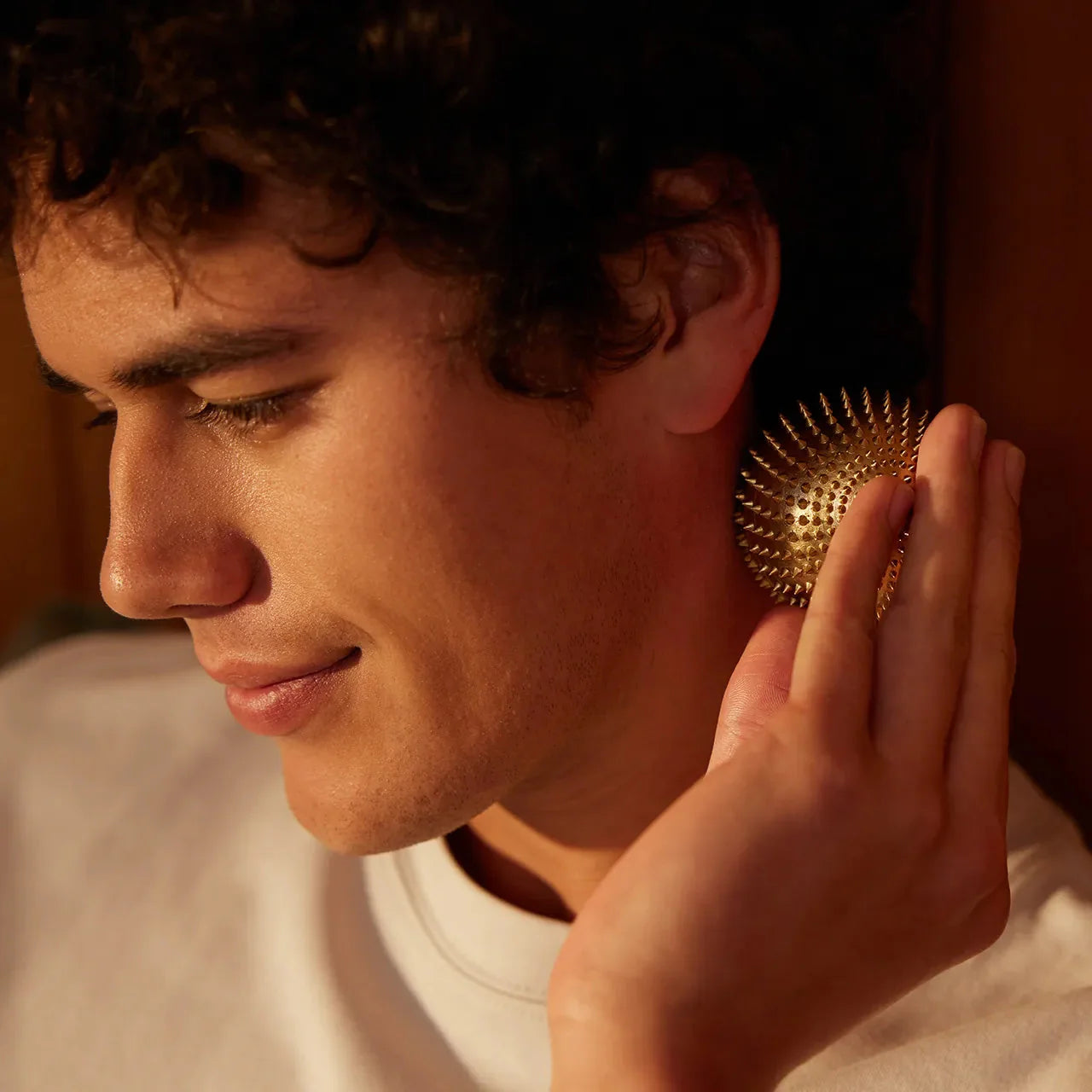 The Wonderball is a kinetic wellness tool designed for any time of day. Roll its spikes into tight areas to relax tight muscles and increase circulation. Sit with the sensation to restore your body and mind.